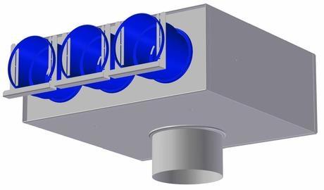 Fördelningslådan är utväcklad för att skapa låga tryckfall och god ljuddämpning. AF-FB levereras som standard med Ø160 anslutning. Andra dimensioner levereras på förfrågan.