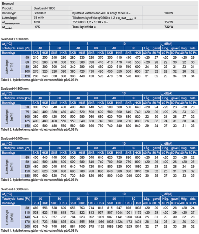 Svalbard-I används för vattenburen kyla, värme vid ventilering av kontor, butiker, undervisningslokaler m.m. Baffeln är tillverkad för att ge en hög kyleffekt, och en hög induktionsgrad som säkerställer en dragfri miljö i vistelsezonen. Svalbard-I passar utmärkt för att integrera i ett undertak med 600 mm bärverksprofil.